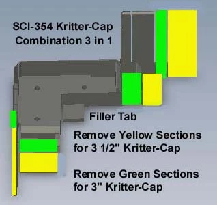 The combination Kritter-Cap SCI-354 can be used for 3-inch, 3 2-inch and 4-inch corner posts. This new Kritter-Cap also has removable filler tabs that are used for filling voids where the plywood sheathing or insulation under the siding doesn’t come to a square corner.