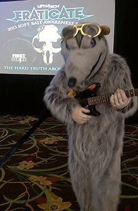 A wandering 6-foot “rat” took pictures and mingled with attendees. |