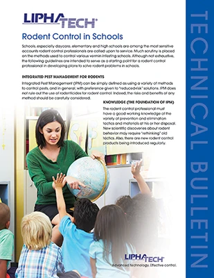 MILWAUKEE, Wis. – Liphatech’s latest Technical Bulletin provides an in-depth description of variables to consider when developing integrated pest management (IPM) programs in school settings. Ted Bruesch, Liphatech Technical Support Manager, authored the piece. Drawing on his over 40 years of experience in the pest control industry, Ted covers plan development, the complexity of potential infestation areas, prevention tactics, elimination tactics and information on pests you may encounter in school environments.
