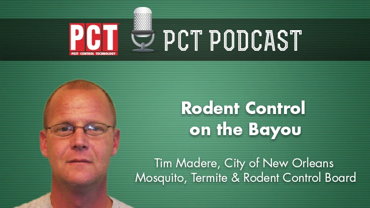 In the following podcast, Tim Madere, from the City of New Orleans Mosquito, Rodent and Termite Control Board, discusses rodent issues in New Orleans, including some of his baiting research and use of 'game cameras' for rodent control. Madere, along with Bobby Corrigan and Matt Frye, are presenters for the Dec. 2 PCT Virtual Rodent Control Conference, sponsored by Bell Laboratories.