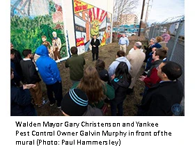 MALDEN, Mass. — Walden, Mass., Mayor Gary Christenson joined Galvin Murphy, owner of Yankee Pest Control, to announce the winner of the Art Mural Contest which transformed the back side of Murphy’s building at 20 Waite Court.