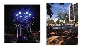 The sculpture is lit with LED lighting so it is visible day and night. Located on the corner of Robinson St. and Eola Drive in Downtown Orlando, Union holds a prominent place at the northeast corner of Lake Eola Park.