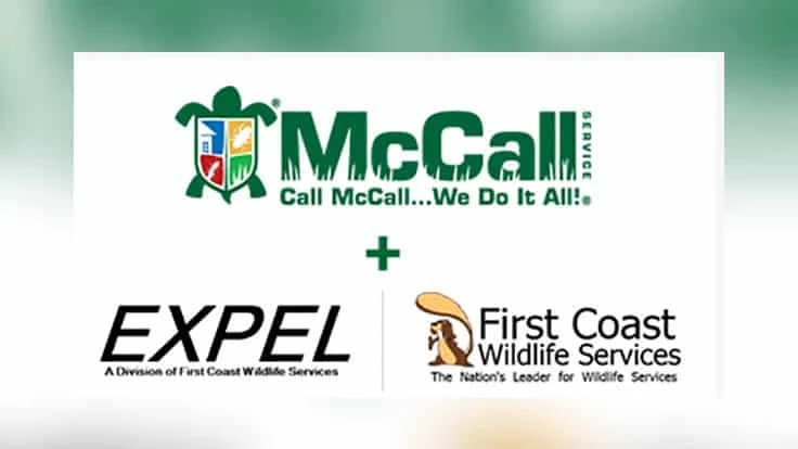 JACKSONVILLE, Fla – McCall Service announced the acquisition of Jacksonville Beach-based First Coast Wildlife and Expel. The acquisition of First Coast Wildlife and Expel will be effective Jan. 6, 2020. The acquisition of Expel adds to the existing pest control business of McCall’s Jacksonville, Orlando and Tampa service areas. The acquisition of First Coast Wildlife greatly expands McCall’s presence and expertise in the wildlife control and exclusion business throughout its entire service area.
