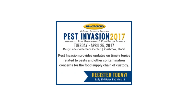 SOUTH ELGIN, Ill. — McCloud Services announced its annual Pest Invasion integrated pest management and food safety seminar that will take place April 25 at the Drury Lane Conference Center & Theater in Oakbrook, Ill.