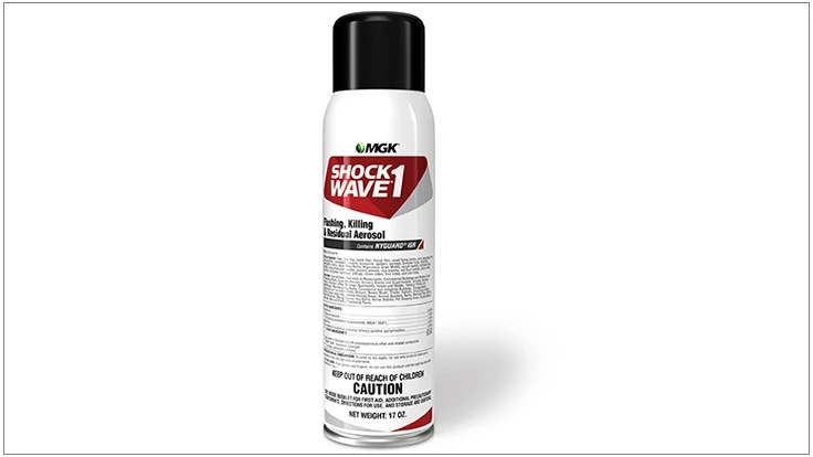 Shockwave 1 Flushing, Killing & Residual Aerosol offers convenience and performance, wherever you need it, MGK reports. This new aerosol flushes, leaves an adulticide with residual and contains an IGR. Shockwave 1 Aerosol can be applied in food-handling areas and even sprays upside down for tough-to-reach locations.