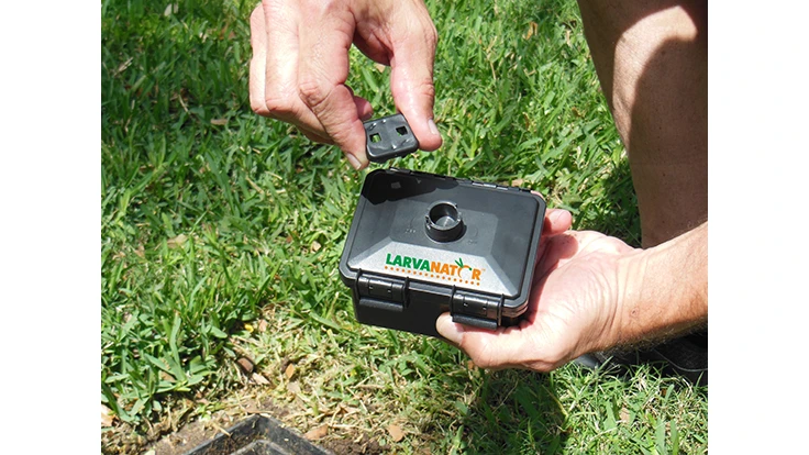 KATY, Texas – MosquitoMax announces the release of the Larvanator ALD-365, a patent-pending automatic larvicide-dispensing device that works year-round to eliminate mosquito larva in catch basins, French drains, drainage systems and other places that hold standing water. The device, developed by owner of MosquitoMax Jeff White, automatically dispenses larvicide into residential and commercial drainage systems that hold standing water.