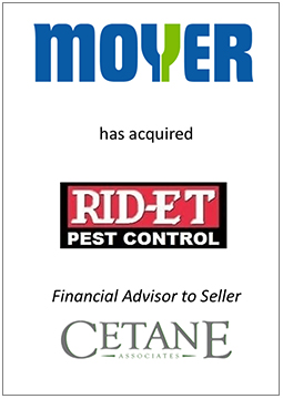 SOUDERTON, Penn. – Moyer & Son of Souderton, Pa., has acquired Rid-Et Pest Control of Nazareth, Pa. The transaction closed on Dec. 20, 2024, and was announced by Cetane Associates, sole arranger and financial adviser to Rid-Et Pest Control.