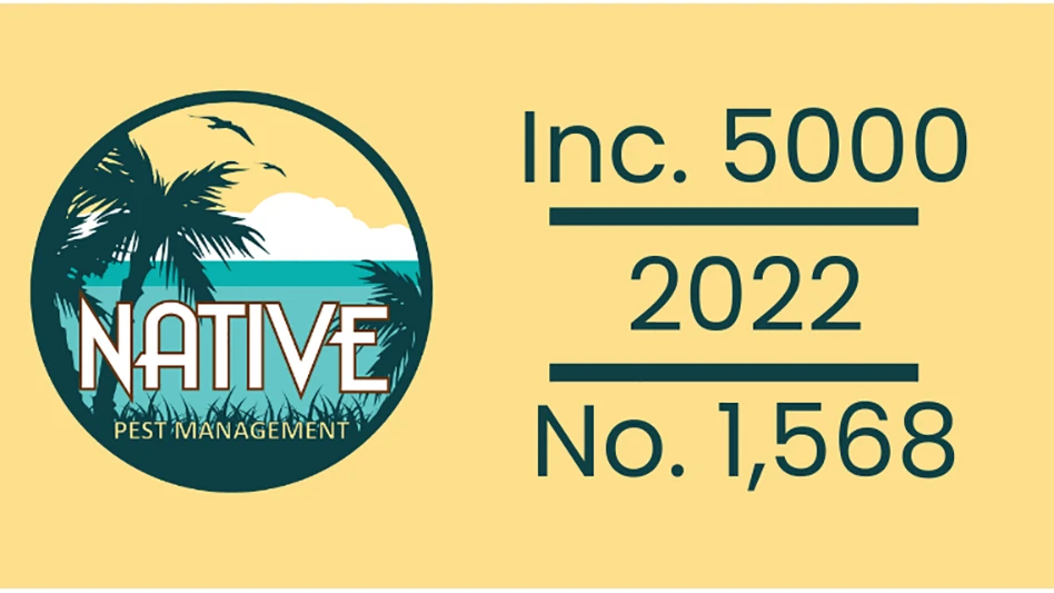 TALLAHASSEE, Fla. — Inc. Magazine revealed Native Pest Management as No. 1568 on its annual Inc. 5000 list, the magazine's list of the fastest-growing private companies in America. This is Native Pest Management’s second year in a row making the list with a three-year revenue growth of 278% percent. Native Pest Management is also No.127 in Florida, No. 117 in Consumer Products & Services, and No. 58 in the Miami area.