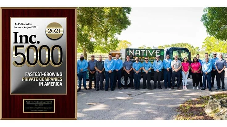 WEST PALM BEACH, Fla. — Inc. Magazine ranked Native Pest Management No. 1,494 on its 2021 Inc. 5000 list, which recognizes America's top 5,000 fastest-growing private companies.