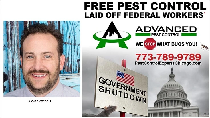 CHICAGO – To help federal employees and their families keep their residences pest-free during the ongoing government shutdown a Chicago area PCO offered free services. Bryan Nichols, owner of Advanced Maintenance and Pest Solutions, offered federal employees a one-time service for up to $175 until the shutdown ended.