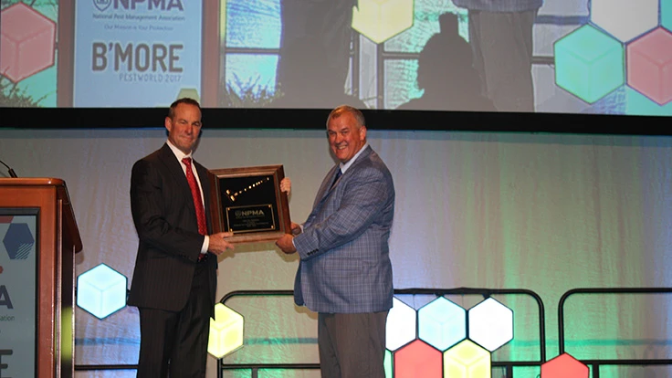 (Pictured: NPMA Past President Chuck Tindol, left, and current NPMA President Bryan Cooksey, after "passing the gavel" at PestWorld)