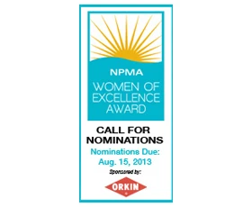 FAIRFAX. Va. — The National Pest Management Association (NPMA) announced a call for nominations for NPMA's Women of Excellence Award, presented by Orkin. This is the fifth year the NPMA will recognize women who advance the pest management industry every day, in every way. Nominations open today and may be submitted online by no later than August 15. Self-nominations will be accepted.