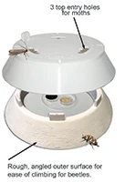 The XLure Fabric Insect Trap uses the same body type as the XLure R.T.U. Beetle Floor trap, with the addition of top entry holes for moths. The trap is reusable with money saving replacement kits available.