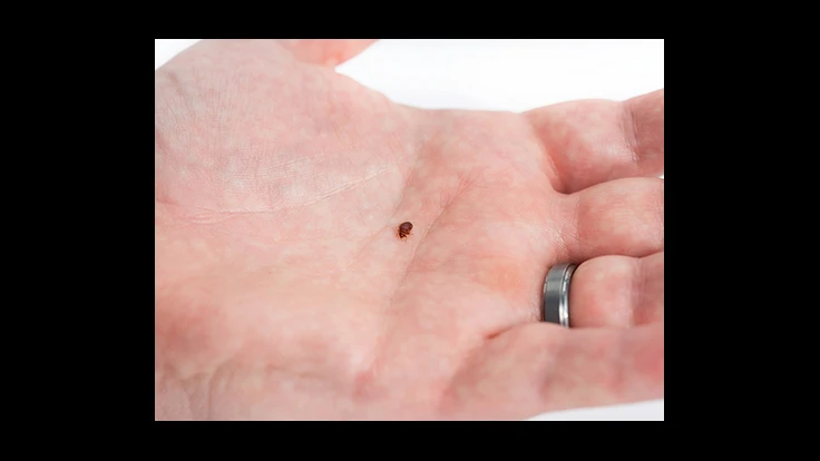 (Pictured: Adult bed bugs are about the size of an apple seed and are typically reddish brown. Their small size and ability to hide make them difficult to see during the day, so it’s important to look for the black, ink-like stains they can leave behind. Photo: Orkin)