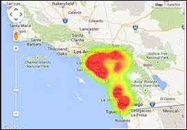 Pro Pacific Pest Control has developed a rainbow-colored map that represents the susceptibility of obtaining an infestation for a variety of pest types (bed bugs, fleas, cockroaches, wasps, etc.) within their service area. Using Google Maps and their Fusion Tables application, the highlighted maps offer a unique visualization of vulnerability to pest problems within southern California.
