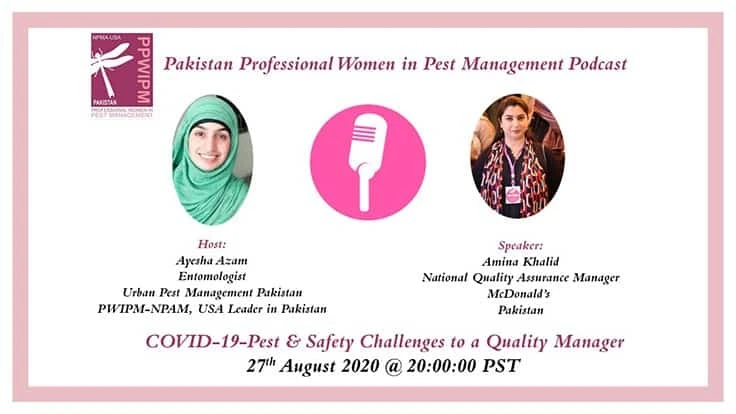The Pakistan chapter of Professional Women in Pest Management PWIPM is going to host a podcast series on the topic of "Impact of COVID-19, pest & safety challenges to professionals."