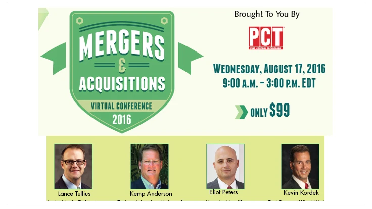 On Aug. 17 from 9 a.m. to 3 p.m. (EDT), PCT will host a Mergers & Acquisitions Virtual Conference for those interested in buying a business and for those who may want to sell theirs in the future. With advice from leading experts in the acquisition industry, and more specifically the pest control acquisition industry, attendees will gain a better understanding of what it takes to become a smart buyer and/or appealing seller.