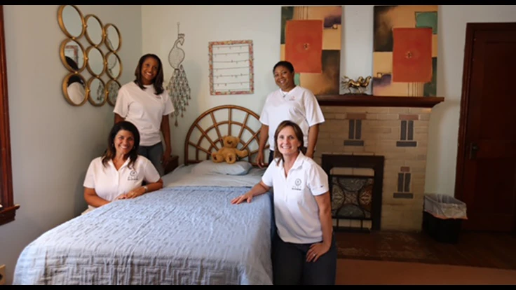 Glenda Lehmberg with C.P.C.O. of Georgia and Andrea Hancock spent a Friday morning organizing the donations of the old mattresses (which were sent to The Place of Forsyth County for families in need) and overseeing the installation of the new mattresses. They even took some time to spruce up the bathrooms in one of the houses with new bath mats and coordinating shower curtain.