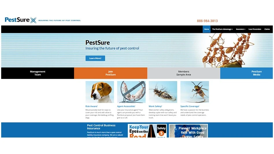 Additional upgrades include expanded content offerings with a revamped blog, a media page with a library of informational videos, detailed information on PestSure’s industry leading safety training services, and the wide array of insurance coverages and programs designed to meet the specific needs of pest management professionals. An enhanced member log-in section where PestSure insureds can access additional content and support services is also on the new site.