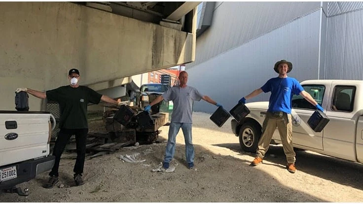 (Pictured, the New Orleans Mosquito, Rodent and Termite Control Board (NOMRTCB) practicing social distancing. From left to right Phil Smith, Timmy Madere and Mark Myers.)