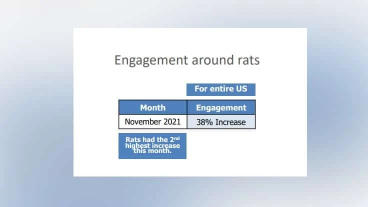- Engagement on 'rodents in the attic' increased by 3,302% from the prior month