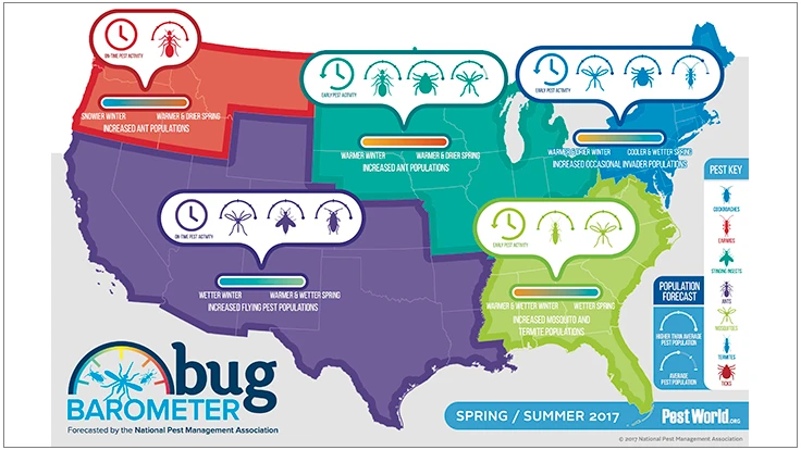 FAIRFAX, Va. — The Professional Pest Management Alliance announced the release of its spring Bug Barometer, a forecast of what Americans can expect in terms of pests in each region of the country based on past and current weather patterns. In addition to the press release and infographic, PPMA also produced its first-ever animated Bug Barometer video featuring NPMA's Jim Fredericks, Ph.D. He can be heard giving viewers a glimpse into the regional pest predictions.