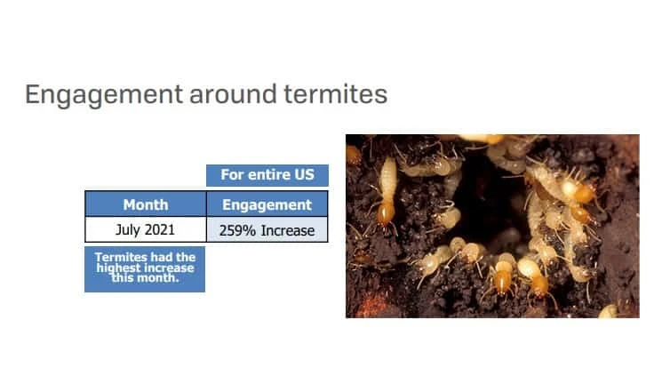 With soggy, wet weather drenching most of the south, it’s no surprise that termites saw the highest increase in engagement out of any other core pest in July at 259%. Engagement around the topic of earwigs also saw a staggering increase of 391% in July. Most surprising, however, is the stark increase in engagement on the topic of mice in Michigan at 3,227% and flies in South Dakota at 1,487%.