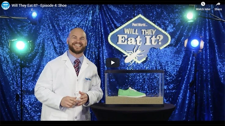 Episode 4 of PPMA’s “Will They Eat It?” video series is now live on the @PestWorld Facebook and YouTube pages, as well as the “Will They Eat It?” hub. In this week’s episode, get close up as termites strip the cotton fabric from a canvas shoe, showing just how quickly these voracious pests can race through your favorite kicks.