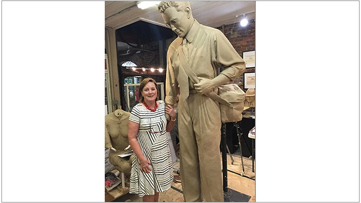 (Pictured above, Sculptor Susie Chisholm stands next to her mold of J.J. Davis in May 2016).