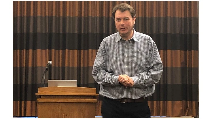 (Pictured: Stephen Cameron, head of Purdue’s Entomology Department, speaks prior to the Tuesday Pi Chi Omega membership meeting.)