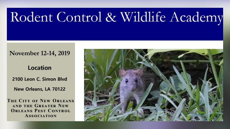NEW ORLEANS - The City of New Orleans and the Greater New Orleans Pest Control Association will be holding its second annual Rodent and Wildlife Academy, November 12-14, in New Orleans.