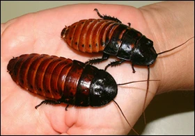 The Madagascar hissing cockroach is one of several similar species native to the island of Madagascar that lives on the forest floor near rotten logs. They are large, non-biting insects with a relatively long life cycle that are fun to observe and easy to care for. Because they are sub-tropical insects, they will not survive in our temperature climate and cannot survive inside a building without care.