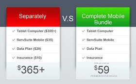 The ServSuite Mobile Bundle is available today and group discounts are available. It is an integration of a turnkey solution with a one-year minimum rental period. Here is a quick look at a comparison of the complete mobile bundle and if you bought the components separately