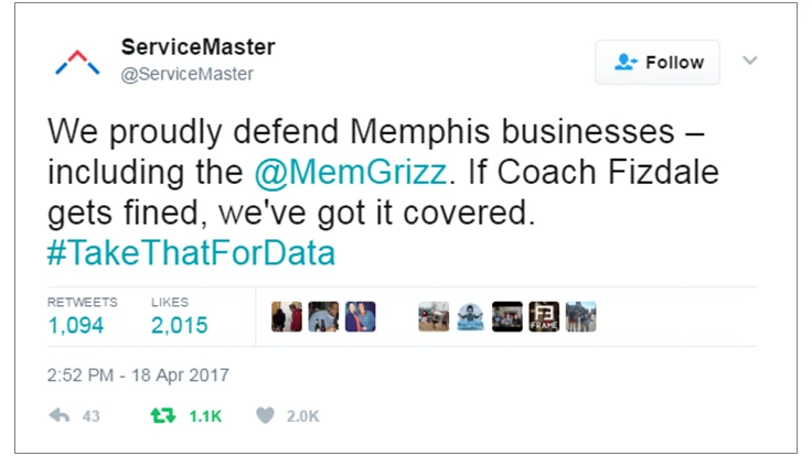 Memphis-based Grizzlies sponsor ServiceMaster is in the business of defending homes and businesses from pests and potential damages — that’s why the brand has offered to clean up this mess and cover the cost of any league fees incurred as a result of the coach’s commentary (capped at $25k). The home and commercial services provider announced the offer in a tweet on Tuesday.