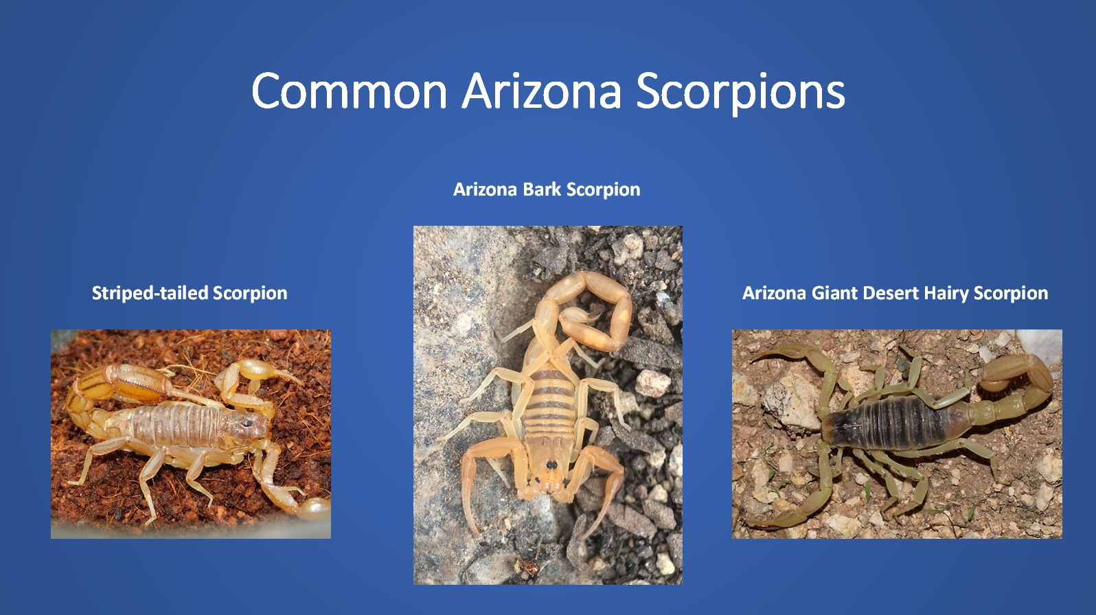 Figure 1. Slide used to introduce common scorpion species in the Phoenix Valley. Note the three large photos with very little text.