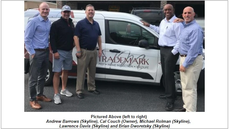 “Skyline is proud to welcome Trademark Pest Solutions to our growing team,” said Brian Dworetsky region vice president of Skyline Pest Solutions. “We are excited to work with their customers and look forward to providing the same level of high-quality service they have come to expect.”