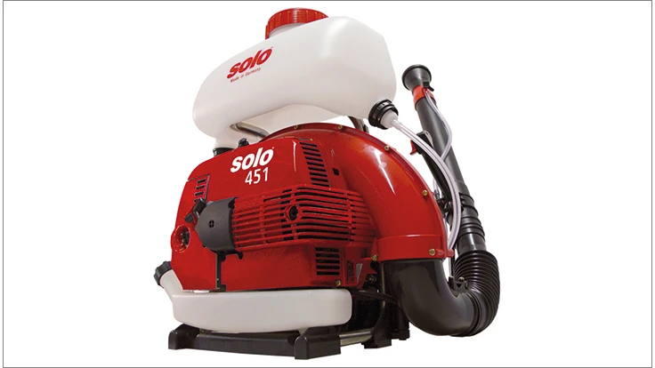 The 451 Mist Blower from Solo is ideal for mosquito control: for applying long-lasting larvicides to kill pre-adult mosquitoes and adulticides to kill adult mosquitoes. The Solo 451 mist blower has impressive spraying capacity and is light weight. The 451 mist blower creates a fine mist, applying chemicals over large areas. It is equipped with a powerful 66.5 cc Solo engine with a Nikasil-coated cylinder. The extra-large polymer impeller produces high air volume at a lower RPM, reducing fuel consumption and noise level. Advanced engine technology ensures low fuel consumption, reduced exhaust emissions and high performance in continuous use. For more information call 800/765-6462 or visit SoloUSA.com.