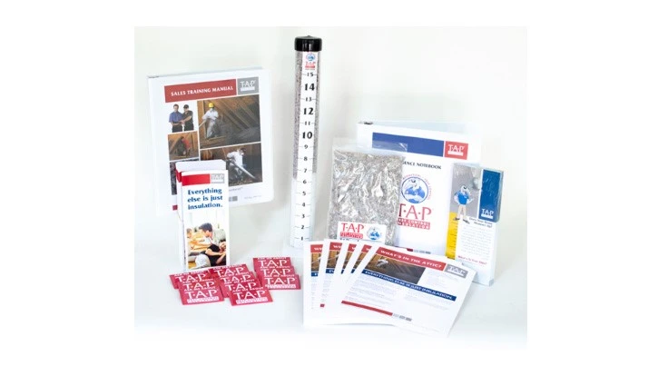 The basic Sales Kit includes: the TAP Sales Training Manual, Evidence Notebook, a sample of TAP Pest Control Insulation, an Insulation Demo Tube, Tri-fold Brochures, Leave Behind Door Hangers, Ask Me About TAP® Buttons, What’s in the Attic? sales flyers, and access to the world-class online provider website. The enhanced version includes a TAP Thermal Demo Unit and a 60-minute training webinar led by a member of the TAP Client Support and Training team. The new Sales Kit can be purchased at www.TAPinsulation.com/shop/ or by phoning (770) 766-6050.