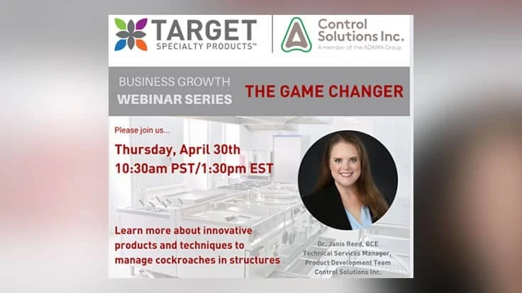 SANTA FE SPRINGS, Calif. – Target Specialty Products announced that Control Solutions, Inc., will present on their webinar platform for the April 30 for a Business Growth Webinar Series on cockroach management.