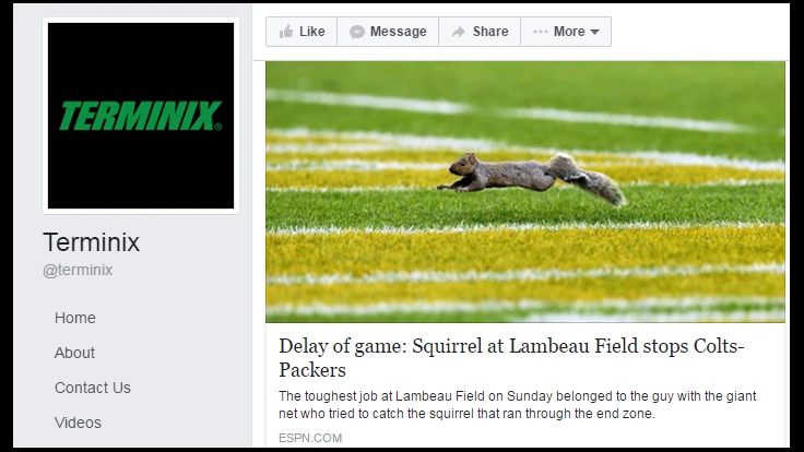 While the squirrel itself entertained Twitter, Terminix was more interested in the stadium staff’s attempt and failure to capture the disruptive rodent. The pest control company issued the following offer to help on Facebook yesterday: