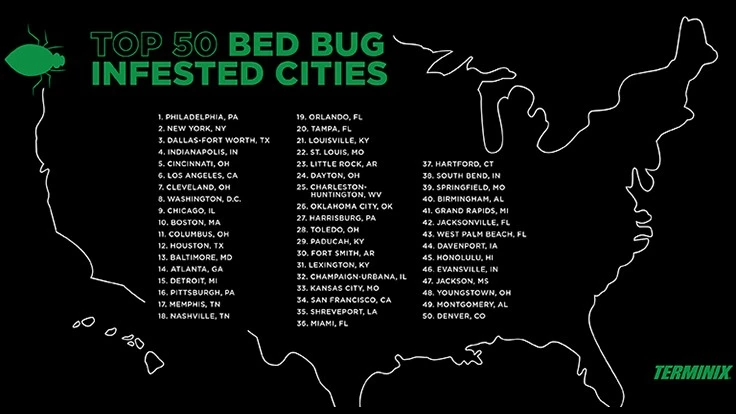 “Bed bugs continue to pose concerns for public health, as their presence is felt across the country, in cities large and small,” said Matthew Stevenson, president of Terminix Residential. “Since pioneering this annual list almost a decade ago, Terminix has proven itself as a leader in bed bug detection, treatment and eradication. We’ve helped bring awareness to an epidemic that can lead to a variety of negative physical health, mental health and financial consequences.”