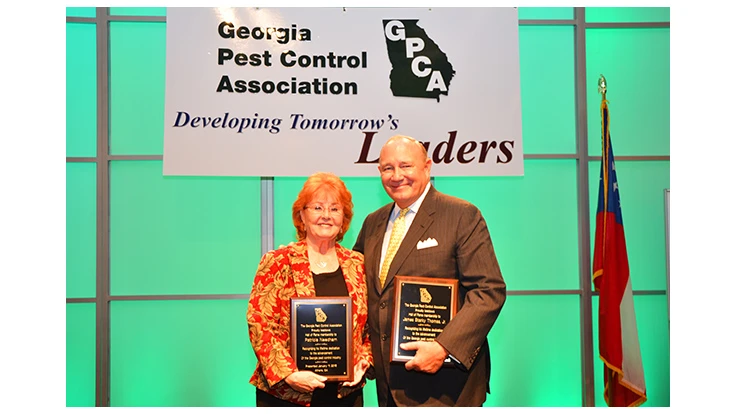 Joe Thomas of Arrow Exterminators and Patty Needham of BB&T Insurance Services were inducted into GPCA’s Hall of Fame at the association’s annual Winter Conference in Athens, Ga., on Jan. 11.