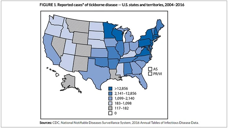 Illnesses blamed on tick, mosquito, and flea bites have more than tripled in the U.S. between 2004 and 2016, CDC officials say. There were more than 642,000 cases of that kind of disease during that time, and the annual count is growing higher each year. In 2004, there were 27,000 cases per year. In 2016, there were 96,000. Health officials say they've also found nine new diseases spread by ticks and mosquitoes in the U.S. since 2004. The CDC says reducing the spread of disease will take a team effort: doctors to diagnose and report cases, local and state officials to track them, and researchers to develop new diagnostic and preventive tools.