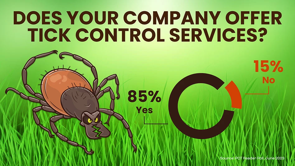 Times have changed and now tick control is offered by most pest control companies. In fact, the vast majority (85 percent) of those who responded to PCT’s recent reader poll indicated they offered tick control services.