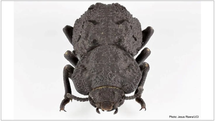 IRVINE, Calif. – With one of the more awe-inspiring names in the animal kingdom, the diabolical ironclad beetle is one formidable insect. Birds, lizards and rodents frequently try to make a meal of it but seldom succeed. Run over it with a car, and the critter lives on.