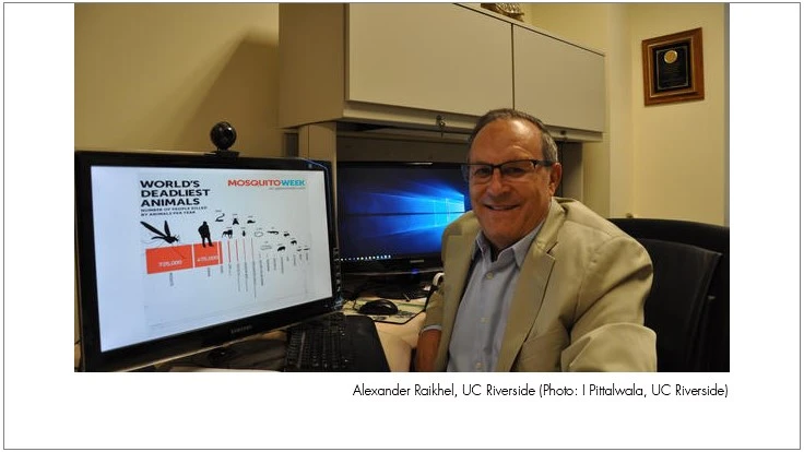 Raikhel, the UC Presidential Chair and the Mir Mulla Endowed Chair in the Department of Entomology and a member of the National Academy of Sciences, explained that disease-transmitting female mosquitoes require a vertebrate blood meal to produce their eggs because egg development occurs only after a diet change from carbohydrate-rich nectar to protein-rich vertebrate blood.
