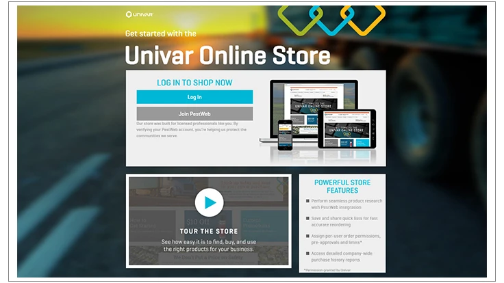 The new Univar Online Store, is only available to registered, licensed professional applicators, and is a key part of the extensive and value-added services Univar provides to PestWeb and PestWeb Plus members, including access to business tools, customized resources, market insight, and online ProTraining courses.