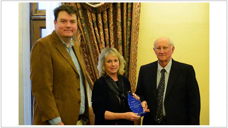 (Pictured: Dr. Gary Bennett accepts the award from nominator Robin Cunningham, Associate Director of Degree and Professional Programs, Purdue University Digital Education and Dr. Stephen L Cameron, Professor/Department Head, Entomology, College of Agriculture, Purdue University.)