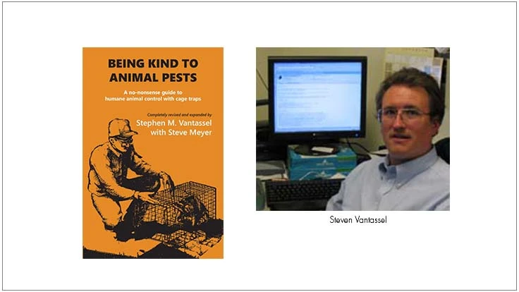 Wildlife control specialist Stephen M. Vantassel has published a revised version of Steve Meyer’s book, Being Kind to Animal Pests. The book, Being Kind to Animal Pests, revised edition, provides users of cage and box traps specific principles and tips to improve the humaneness of these devices. The advice comes from published literature as well as the personal on-the-job experience of professional wildlife control operators.