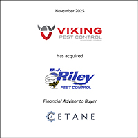 Riley said, “I’m really happy with how everything turned out. Cetane Associates, and Bob Williamson in particular, made the whole process smooth and easy. I know the employees and our customers are in good hands with Viking Pest Control, and that gives me peace of mind. Now I’m looking forward to spending more time with my grandchildren, hitting the golf course, and just enjoying life a bit more.”